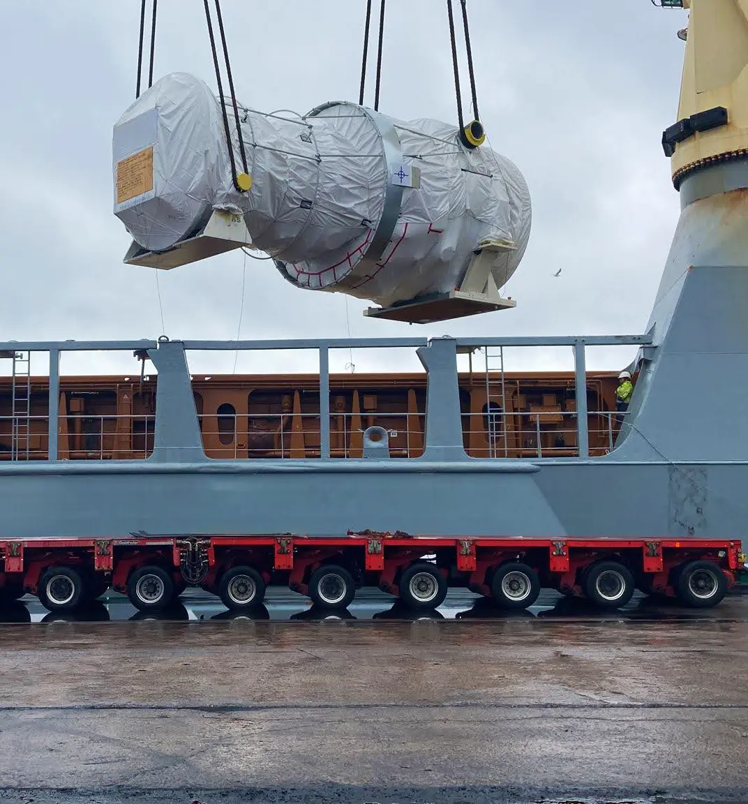 Trans Global Projects managed the delivery of oversized and heavy cargo for a power generation project in Northern Ireland, coordinating DDP shipments from multiple origins across Europe and North America via the Port of Belfast – including four heavy lifts of up to 400 mt each and four dedicated vessel charters.